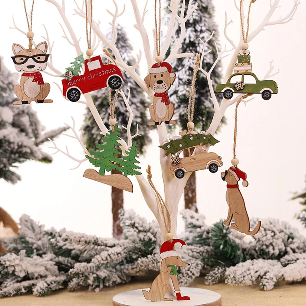 1x1 шт. деревянное подвесное украшение для рождественской елки, кабины, лося, автомобиля, рождевечерние, домашний декор