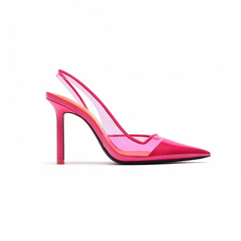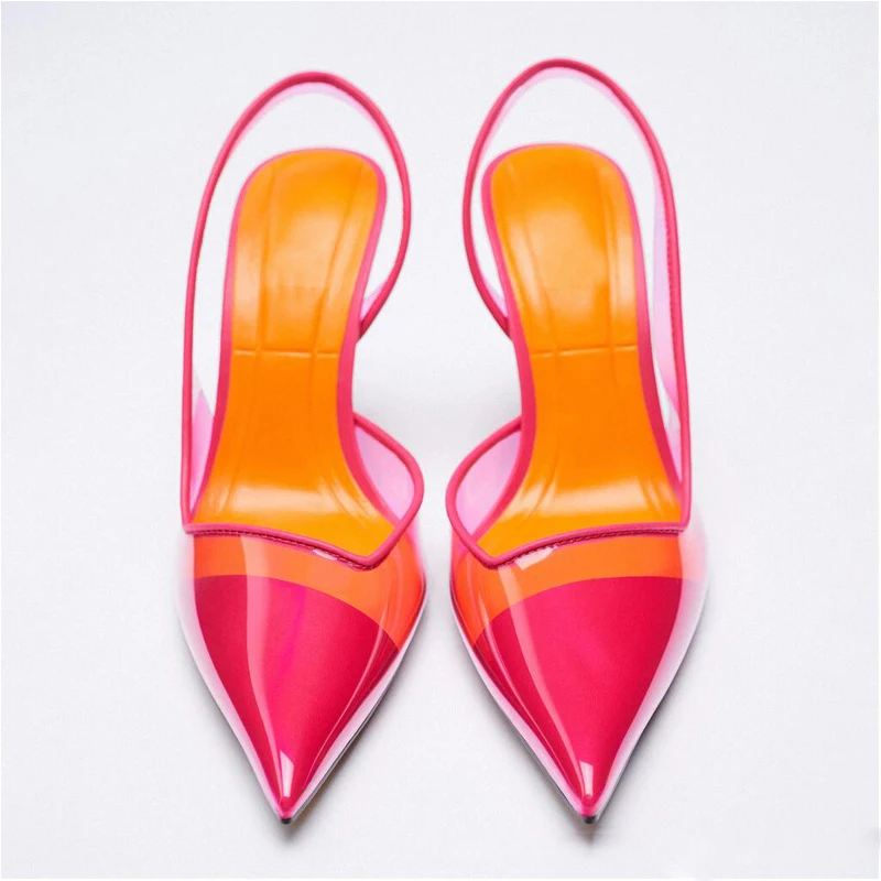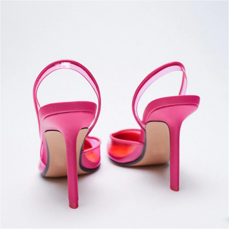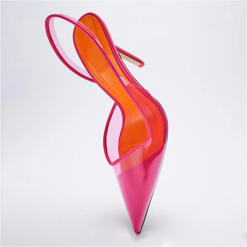 Женские прозрачные туфли на шпильке, розово-красные туфли с острым ...