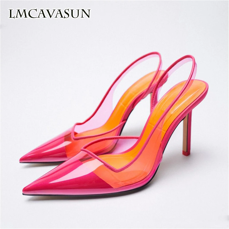 Босоножки LMCAVASUN, пластиковые туфли на высоком каблуке, 2021, розовые, красные, прозрачные, на шпильке, Босоножки на каблуке