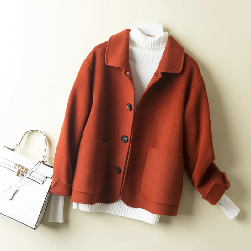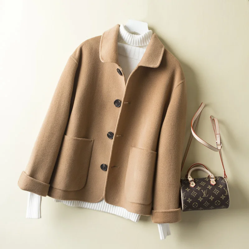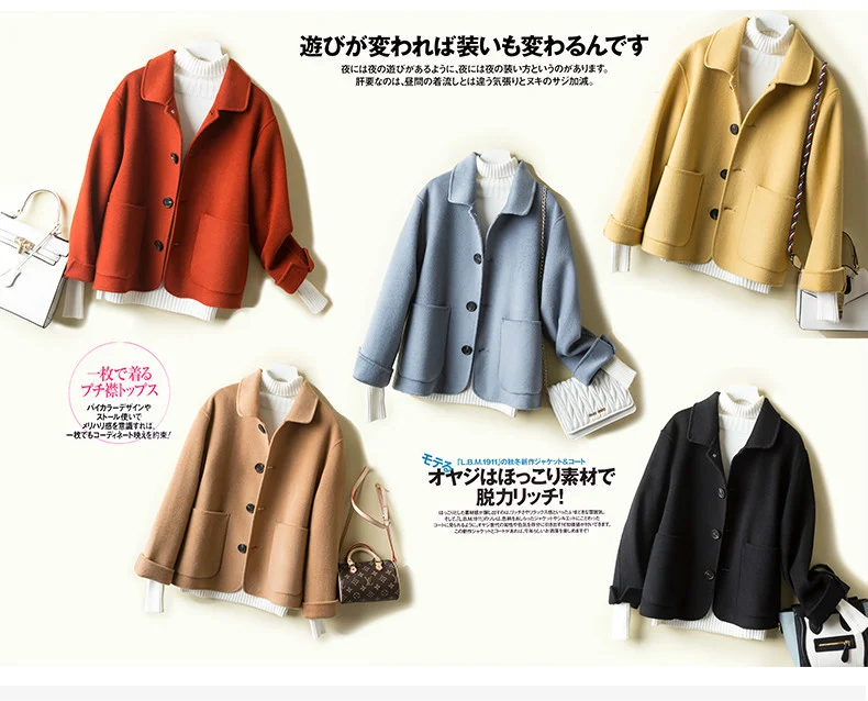 2021 Элегантные повседневные двусторонние кашемировые шерстяные пальто осенне-зимнее пальто женская мягкая короткая женская куртка одежда LW455