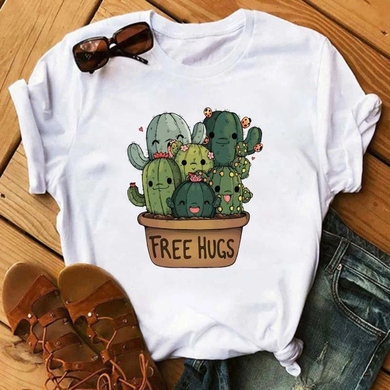 Женская футболка с коротким рукавом, круглым вырезом и принтом кактуса