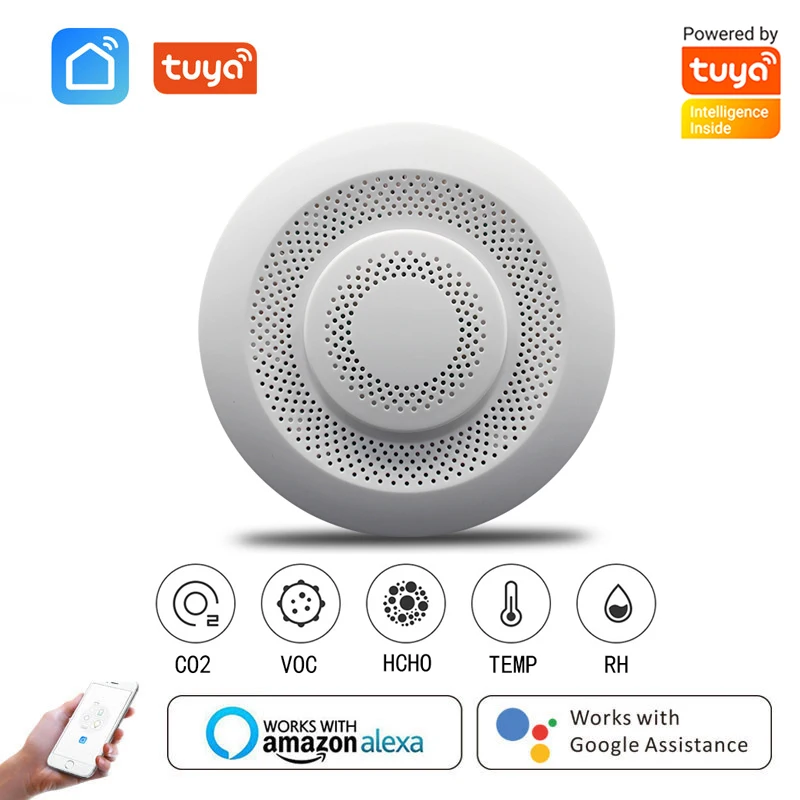 Смарт-детектор углекислого газа Tuya, Wi-Fi детектор содержания формальдегида, датчики температуры и влажности воздуха с приложением Smartlife