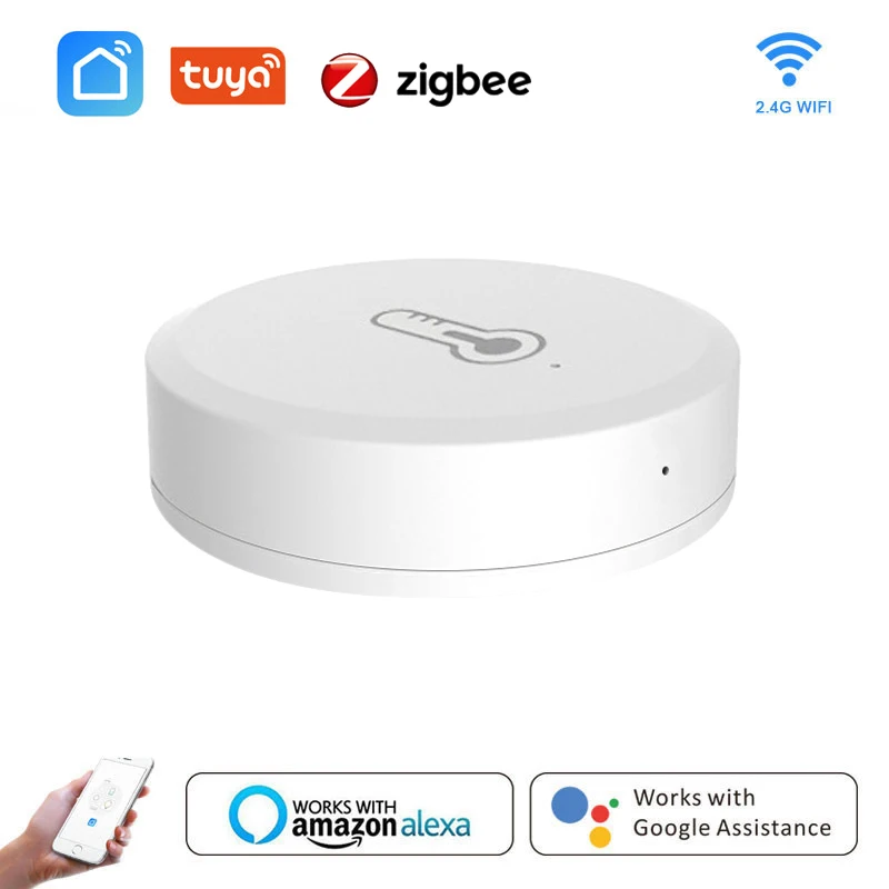 Умный датчик температуры и влажности Tuya Wi-Fi, комнатный гигрометр, термометр с поддержкой Alexa Google Assistant, Zigbee Gateway Hub