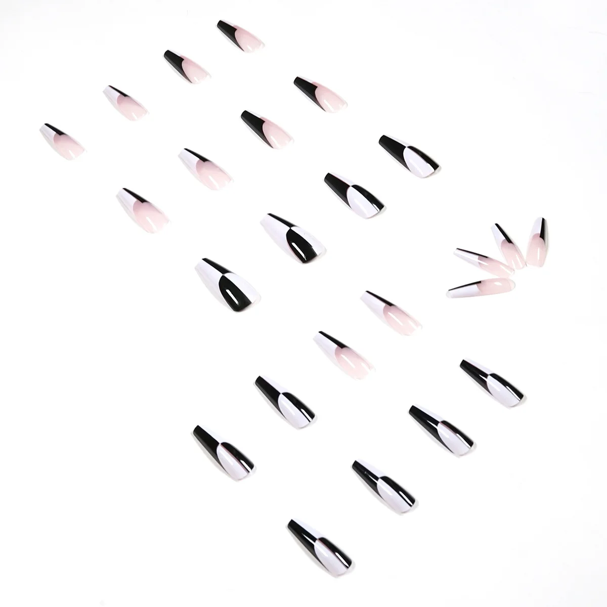 24 шт., черно-белые длинные накладные ногти балерины, съемные накла...