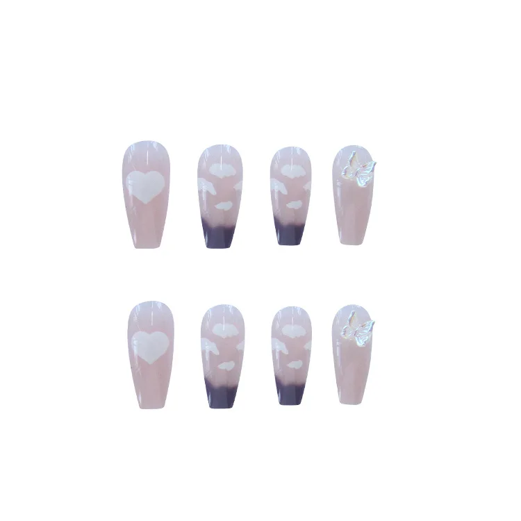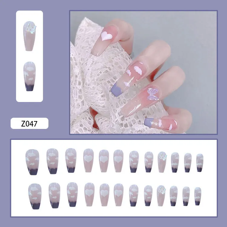 24 шт. накладные ногти с клеем, стикер с голубым небом и облаками, ...