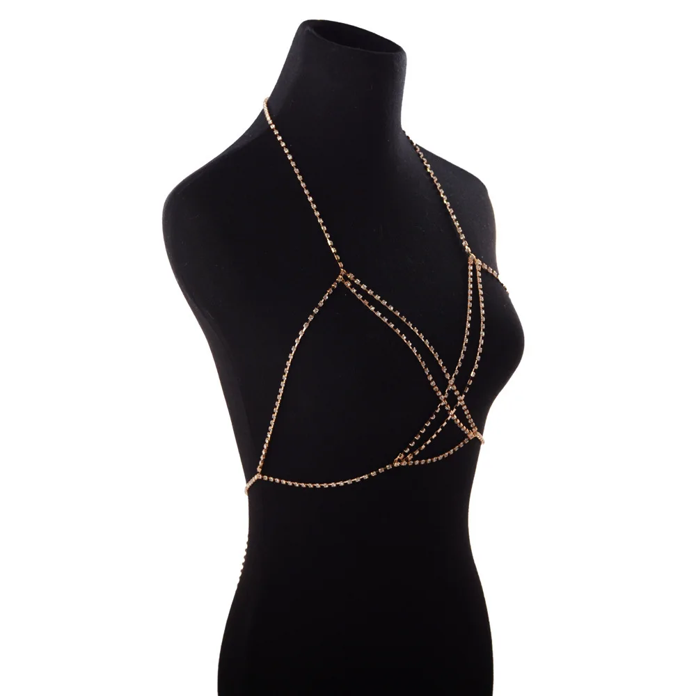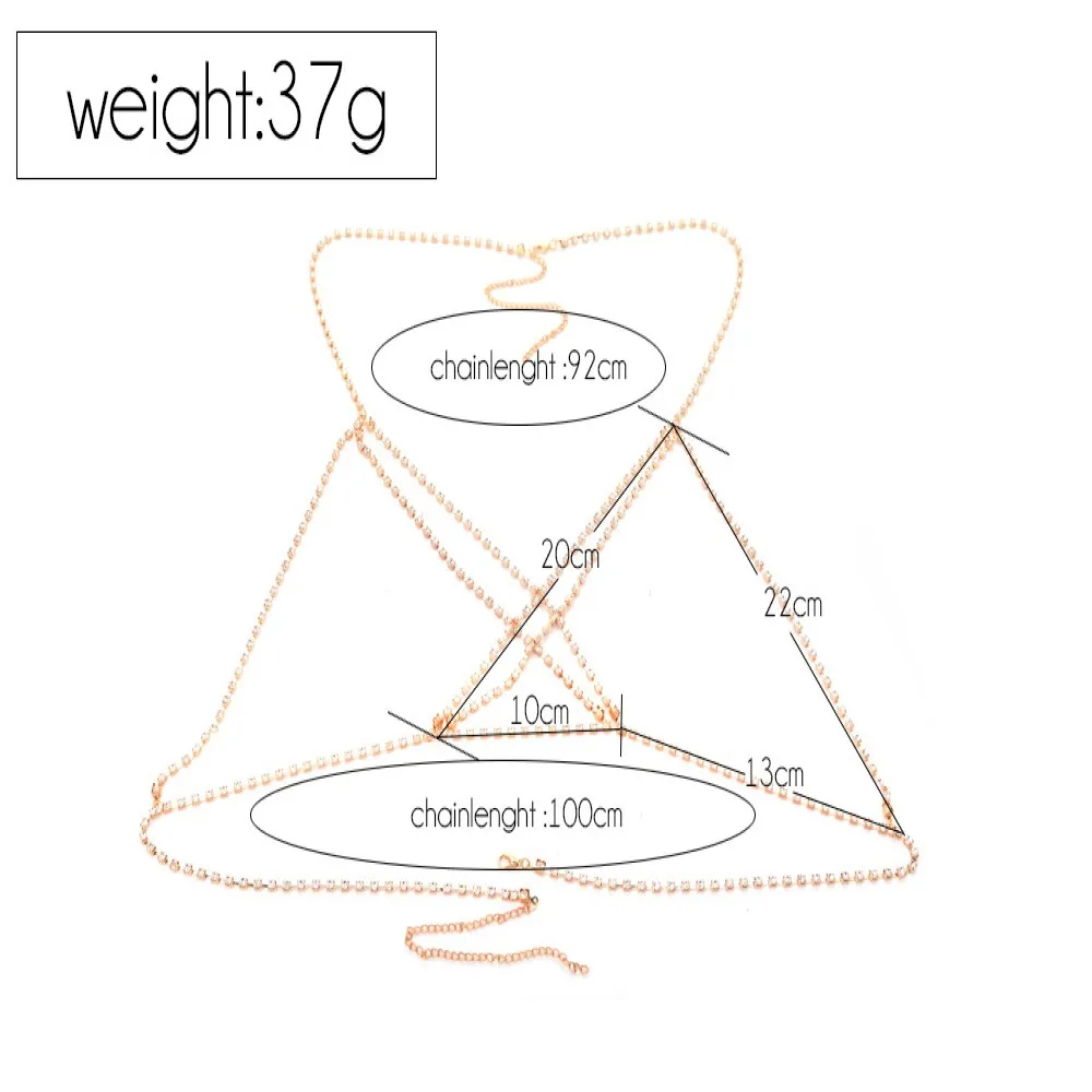 Модное ожерелье с камнем Rhine, цепочка для тела, бра, бикини, пляж...