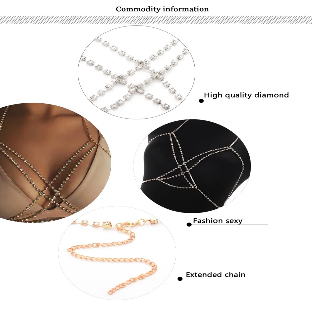 Блестящая женская нагрудная цепочка, стразы, многослойные украшения...
