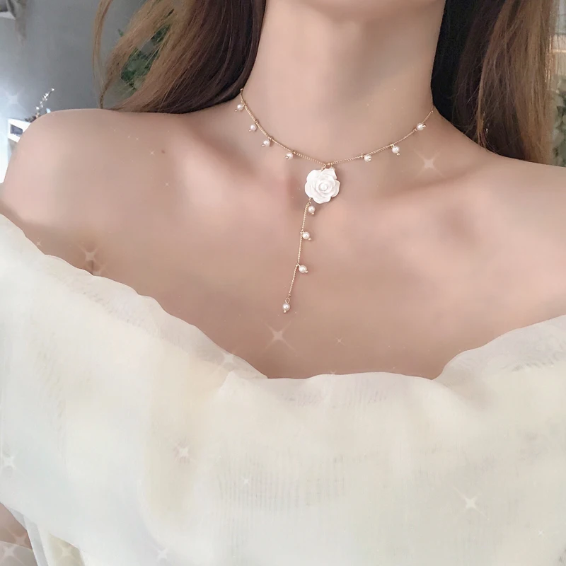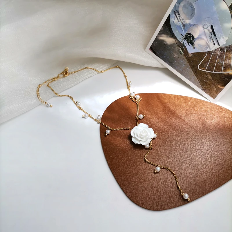 Mihan белый цветок из смолы ожерелье с подвеской милый дизайн элегантное темпераментное ожерелье с имитацией жемчуга для женщин для подарка на вечеринку