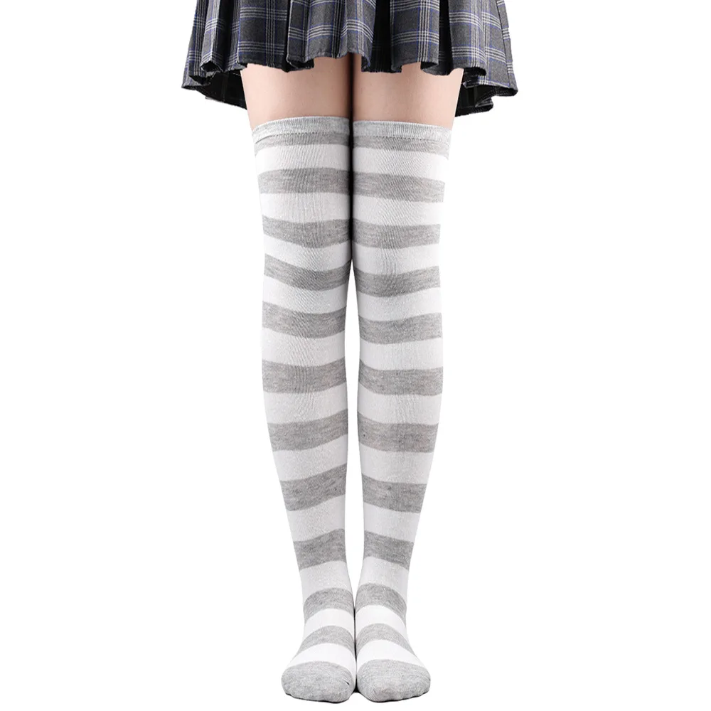 Женские высокие Гольфы выше колена для девочек черные белые полосат...