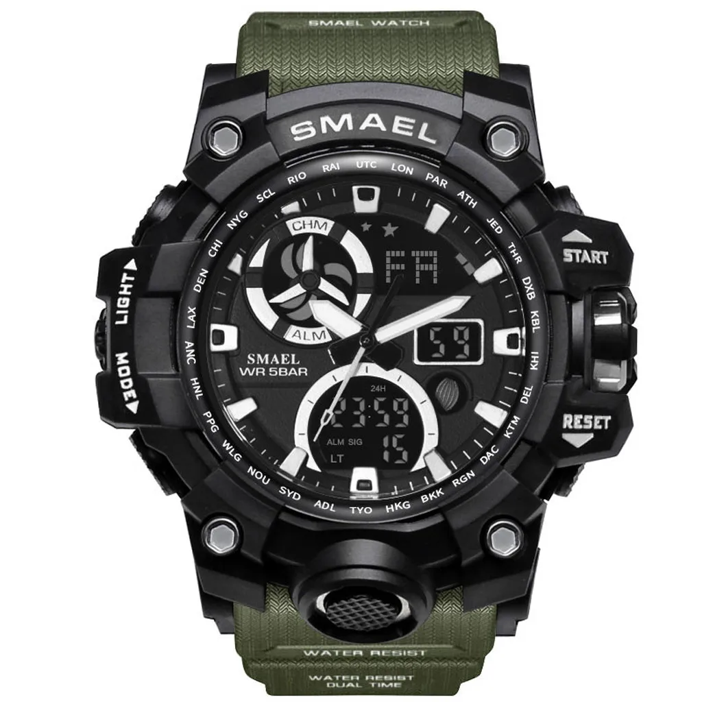 SMAEL мужские спортивные часы с двойным дисплеем, аналоговый цифровой светодиодный, электронные наручные часы