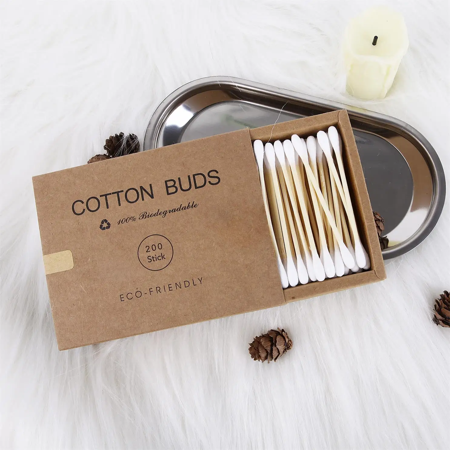 200 шт.коркор. ватные палочки с двойной головкой, бамбуковые палочки, инструменты для ухода за носом и ушами, одноразовые тени для век, макияж губ, ватные палочки