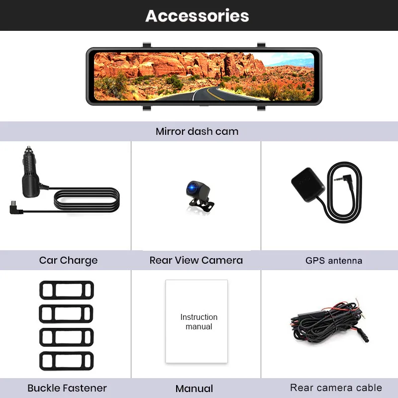 Автомобильный видеорегистратор, 12 дюймов, 4K 3840*2160P, сенсорный экран, GPS-трекер, видеорегистратор с двумя объективами, зеркало заднего вида, видеорегистратор, передняя и задняя камеры