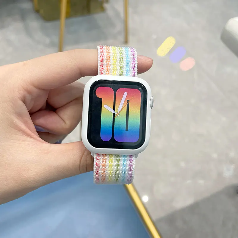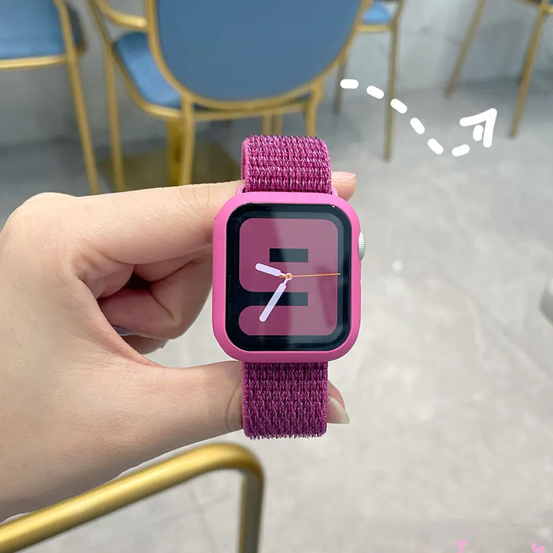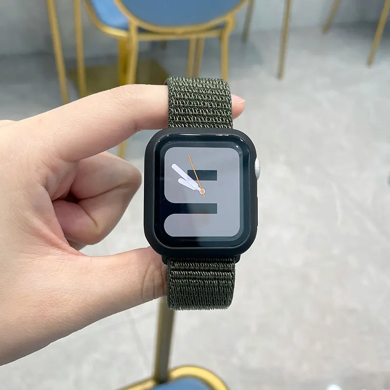 Стекло + чехол + ремешок для Apple Watch, ремешок 44 мм, 40 мм, 38 мм, 42 мм, 44 мм, нейлоновая петля, ремешок для умных часов, браслет iWatch 3 4 5 6 se, ремешок