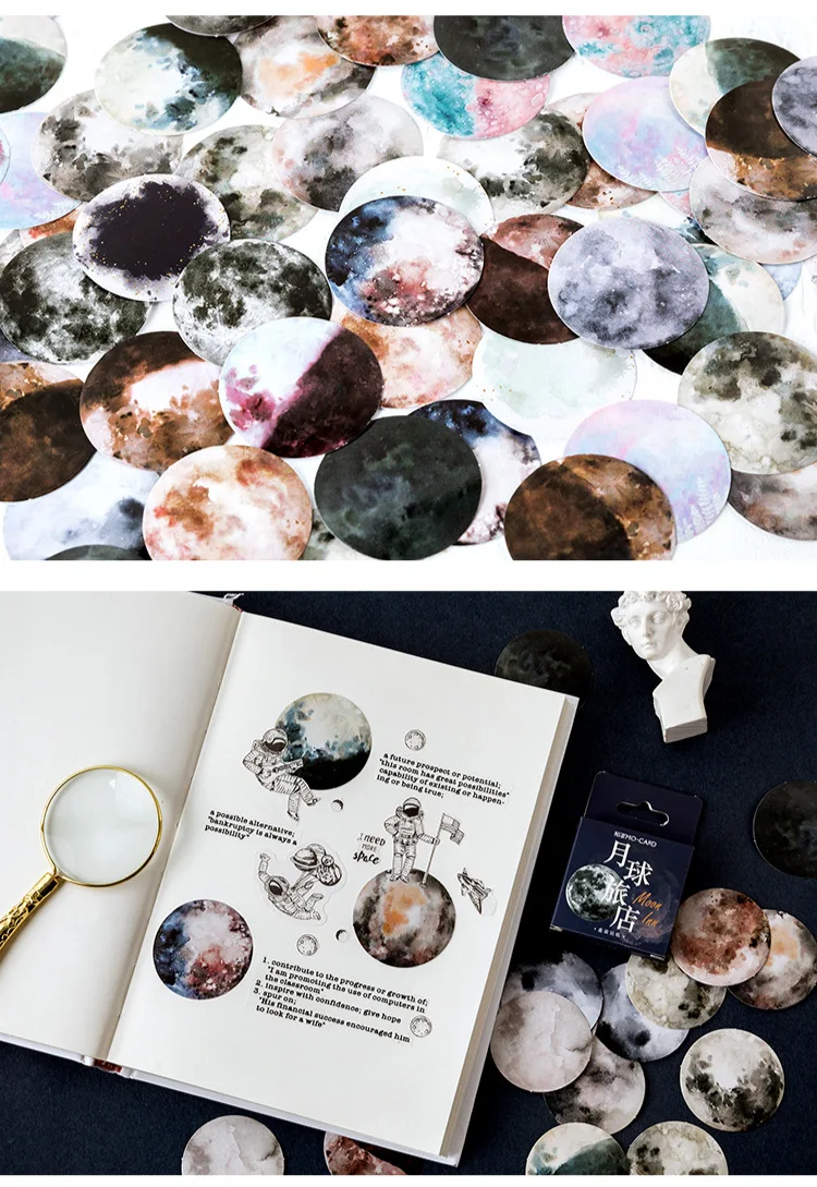Канцелярские наклейки в виде Луны, 46 шт.упак., бумажные стикеры, п...