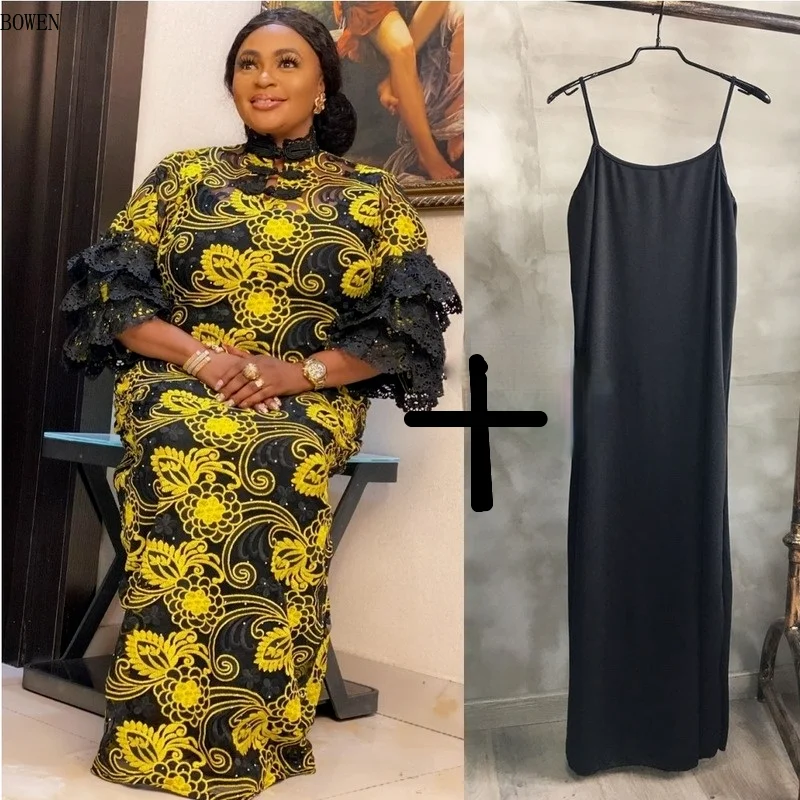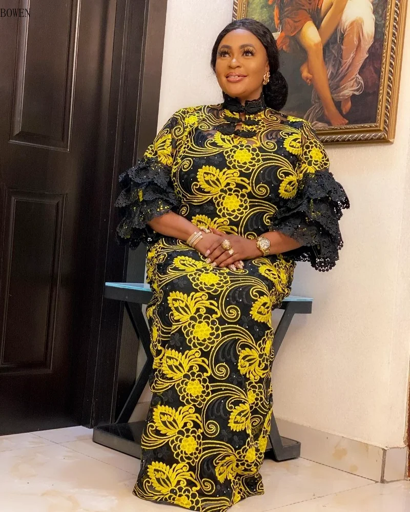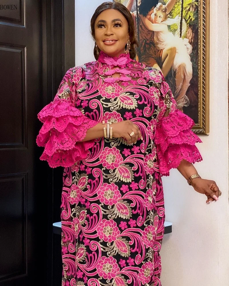 КРУЖЕВНОЙ ХАЛАТ Africaine Vetement Femme 2021 Дашики торт рукав платья Анкары африканская одежда лето размера плюс женские вечерние платья