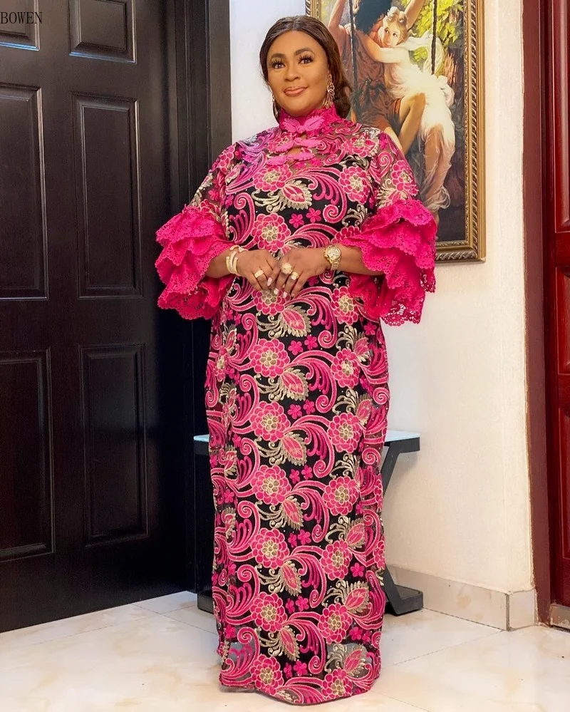 Африканские платья для женщин, новинка 2021, африканская одежда, Дашики, кружевной большой бубоу, Африканский халат, базин, богатые вечерние африканские платья