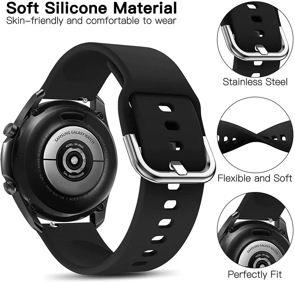 Ремешок силиконовый для Samsung Galaxy Watch 4 Classic, мягкий браслет для наручных часов 46 мм 42 мм, 44 мм 45 мм, 20 мм 22 мм