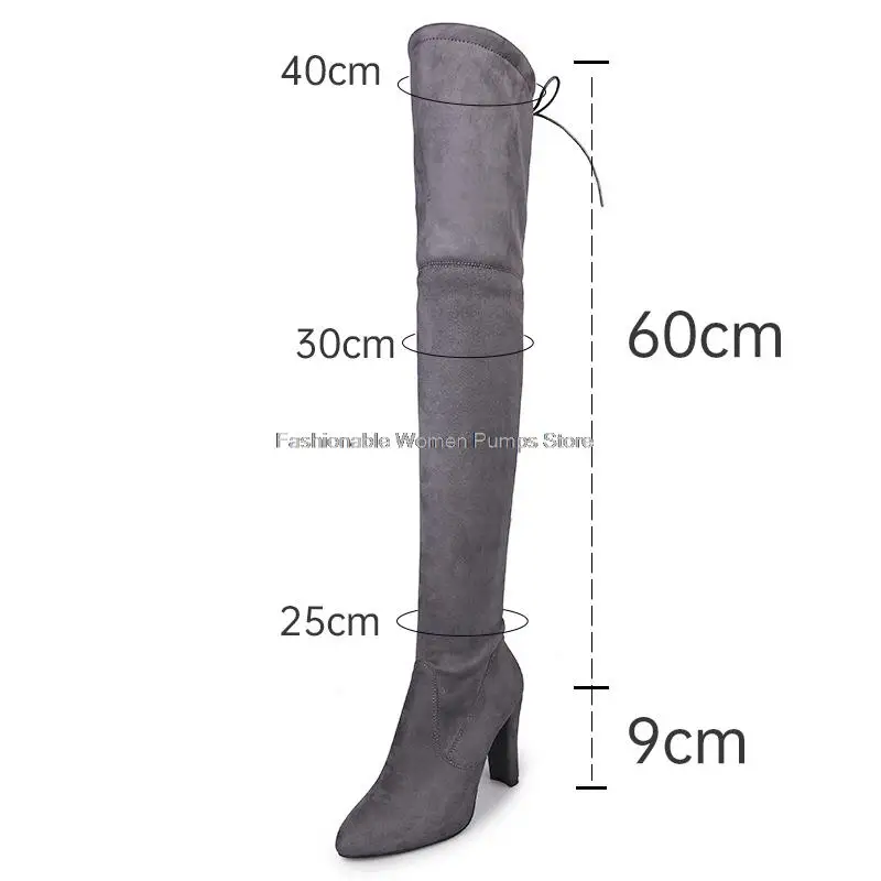 Ботфорты женские облегающие высокие сапоги до бедра, замшевые женские зимние сапоги с острым носком, женские длинные сапоги в римском стиле на высоком каблуке