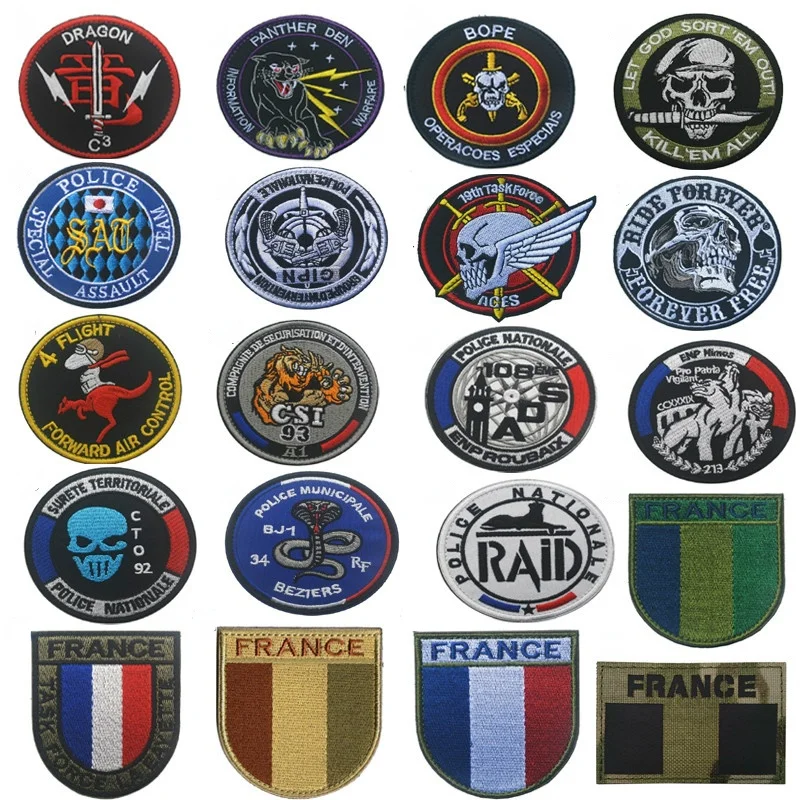 Вышитые нашивки с французским полицейским крючком, одежда, нарукавники, декоративная одежда, волшебная наклейка, съемная нашивка с эмблемой