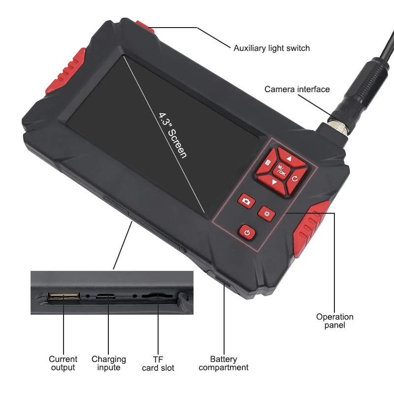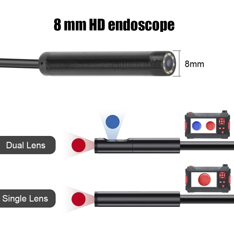 Промышленная камера-эндоскоп с экраном дюйма, 8 мм, водонепроницаемый, с одним объективом, двойная камера 2 м, 5 м, 10 м, жесткий кабель, трубка, 8 светодиодный