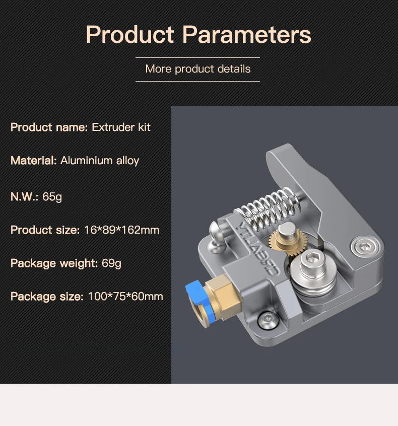 Набор продается с полностью отделенными деталями, и сборка довольно проста благодаря прилагаемому плану. После монтажа тренировка очень прочная. Этот экструдер значительно помогает качеству предметов. Будьте осторожны при затягивании головы на двигателе, штифт не имеет пружины, как двигатель, 2 винта затягиваются, если вы не забудьте затянуть их должным образом.