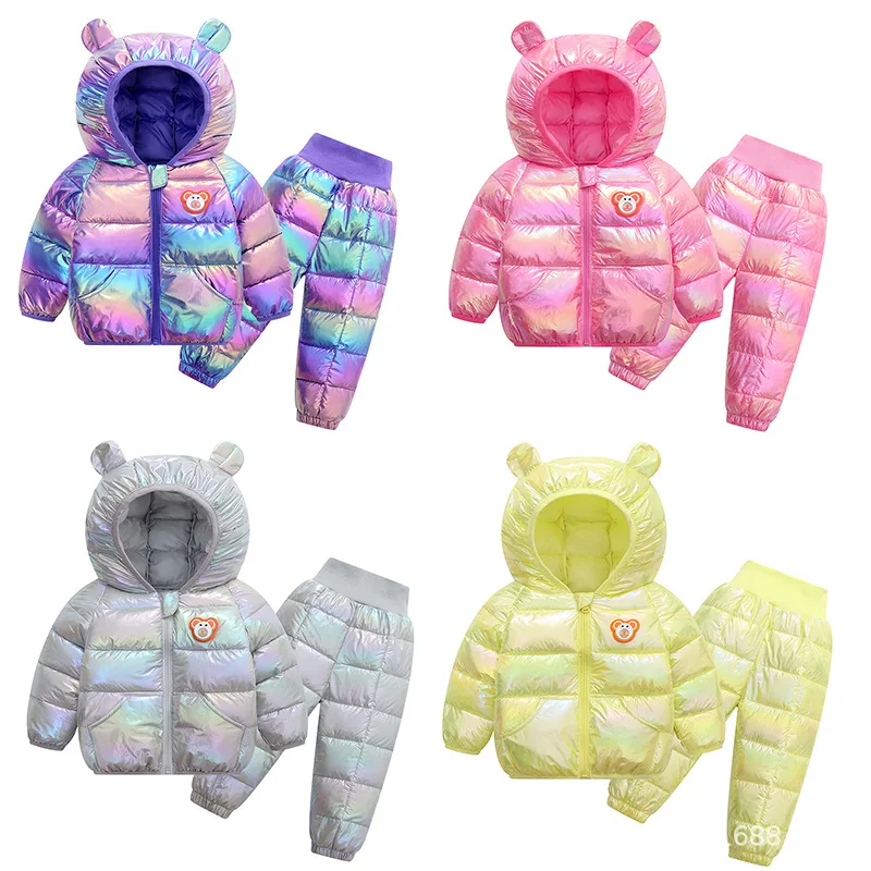 Детский комплект зимней одежды, теплый пуховик с капюшоном и мультяшным медведем для мальчиков и девочек, зимний комбинезон для маленьких мальчиков, пальто, лыжный костюм, 2021