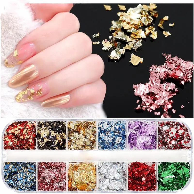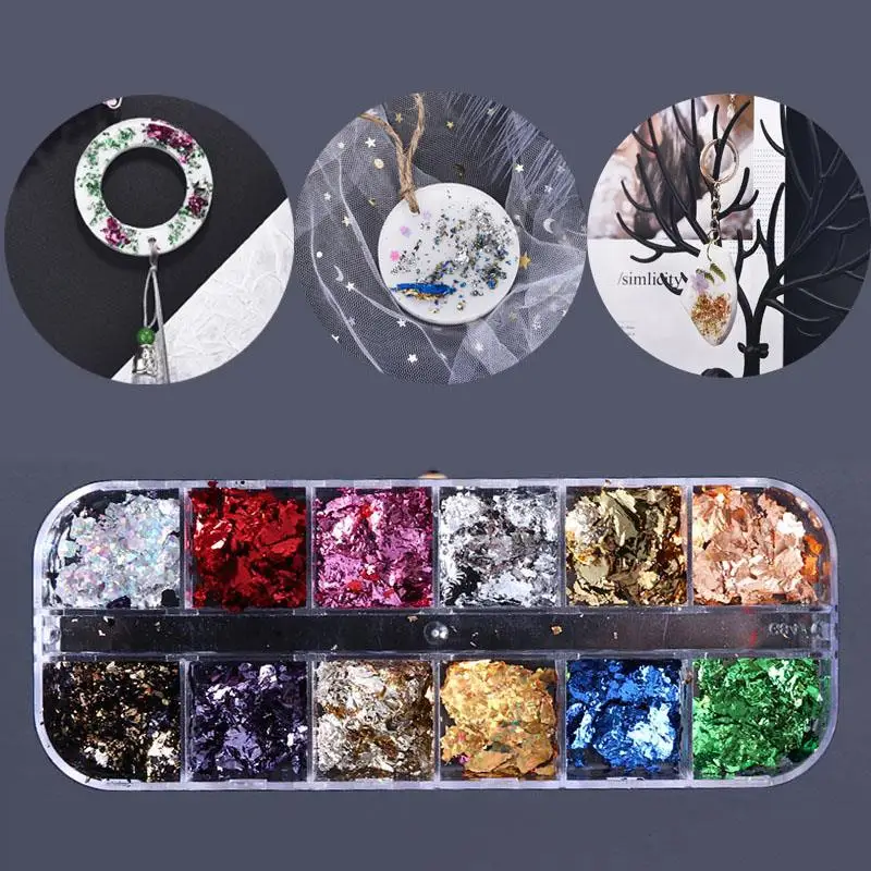 12 цветов Золотая фольга s блестящие хлопья заполнение конфетти DIY эпоксидная смола, форма наполнитель украшения для ногтей Фольга для изготовления ювелирных изделий