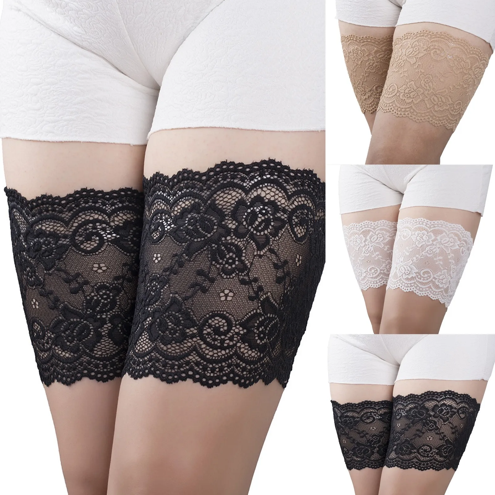 Кружевные эластичные повязки на бедра с защитой от натирания, силик...