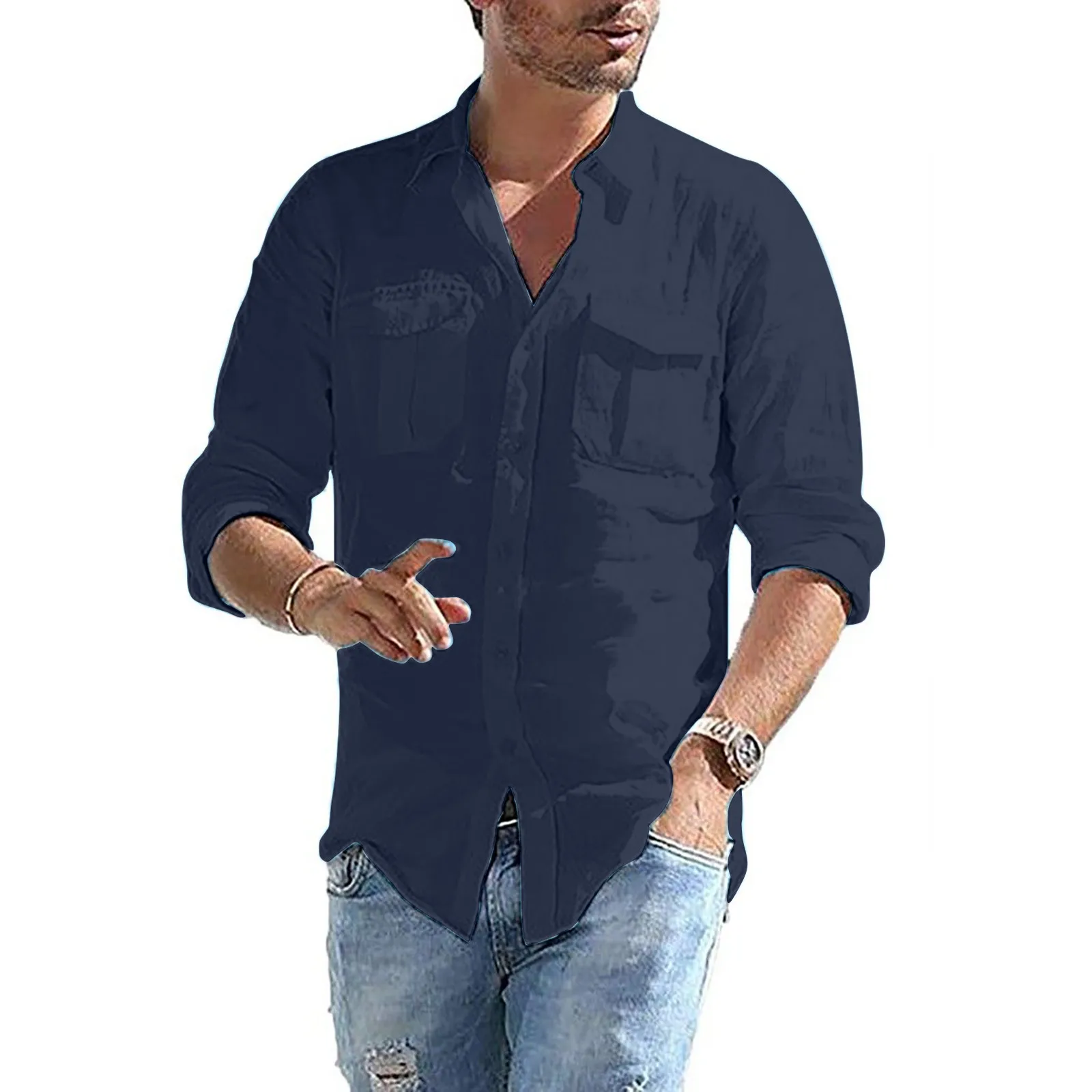 Модная мужская Однотонная рубашка с длинным рукавом и отложным воротником из дышащего хлопка и льна, мешковатая Повседневная рубашка, мужская рубашка # g3