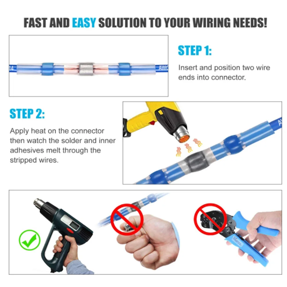 Термоусадочные стыковые обжимные клеммы, водонепроницаемое паяное уплотнение, электрические разъемы, комплект для сращивания проводов в коробке, автомобильный морской