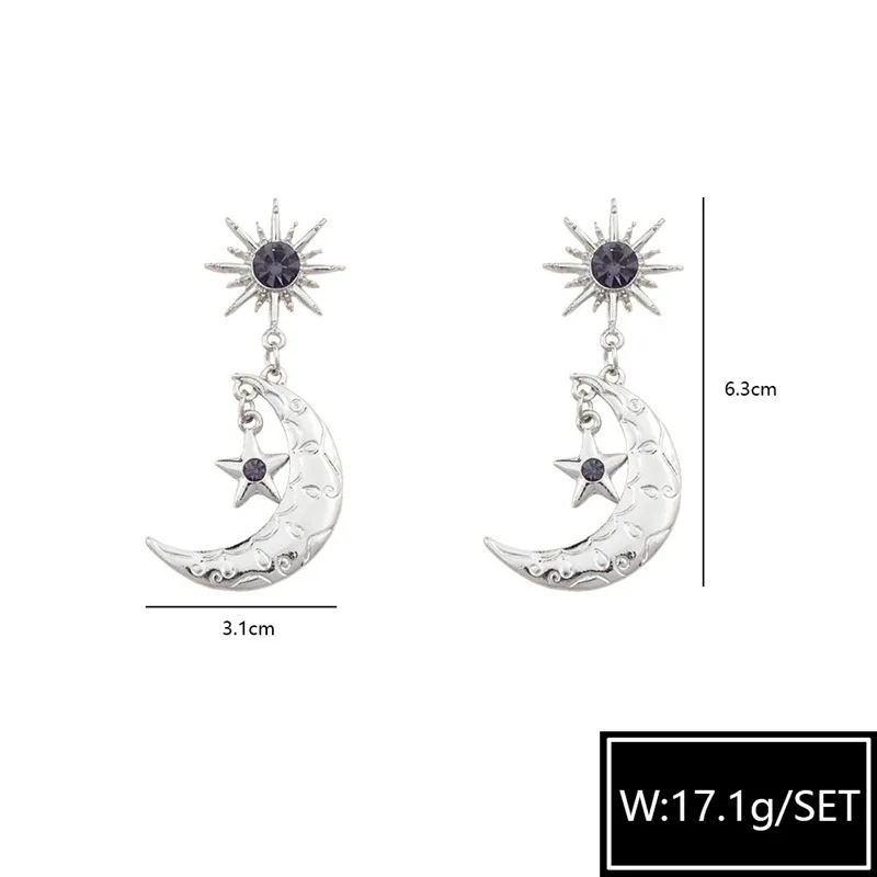 Женские серьги из нержавеющей стали с инкрустацией, серьги с Луной и звездами, ювелирные изделия, 2021