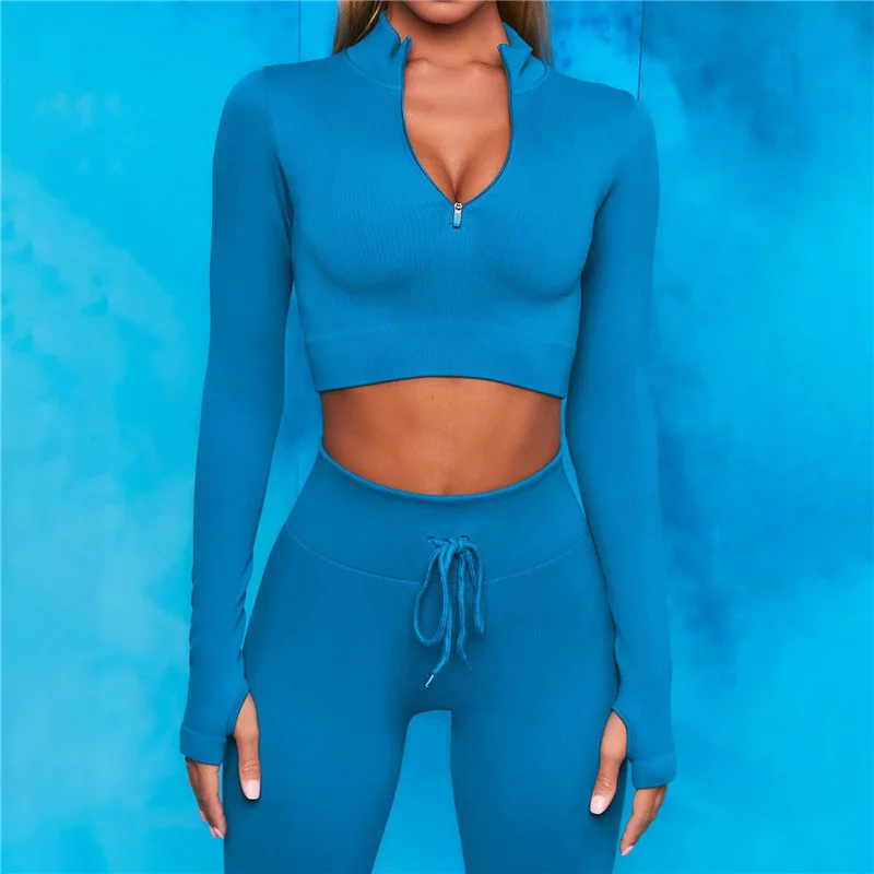 Женские комплекты для йоги из 2 предметов, Топ с длинным рукавом на...