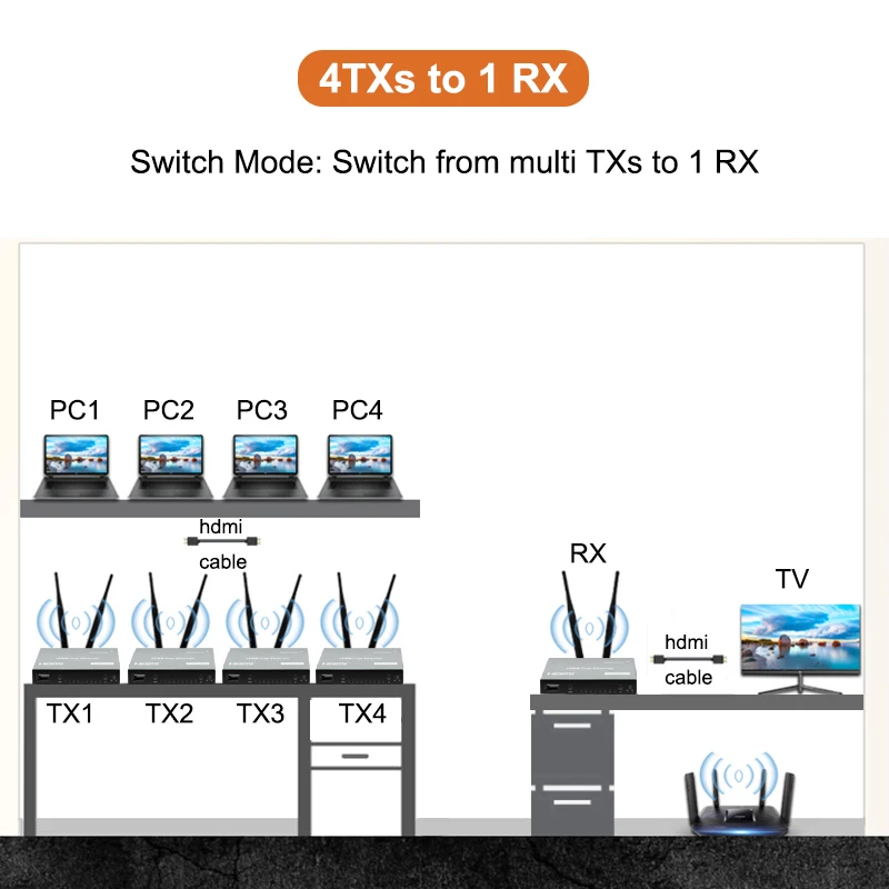 200 м беспроводной HDMI удлинитель передатчик приемник переключатель 4 PC на TV 1 To Multi Splitter видеоконвертер беспроводной передатчик IR Remote