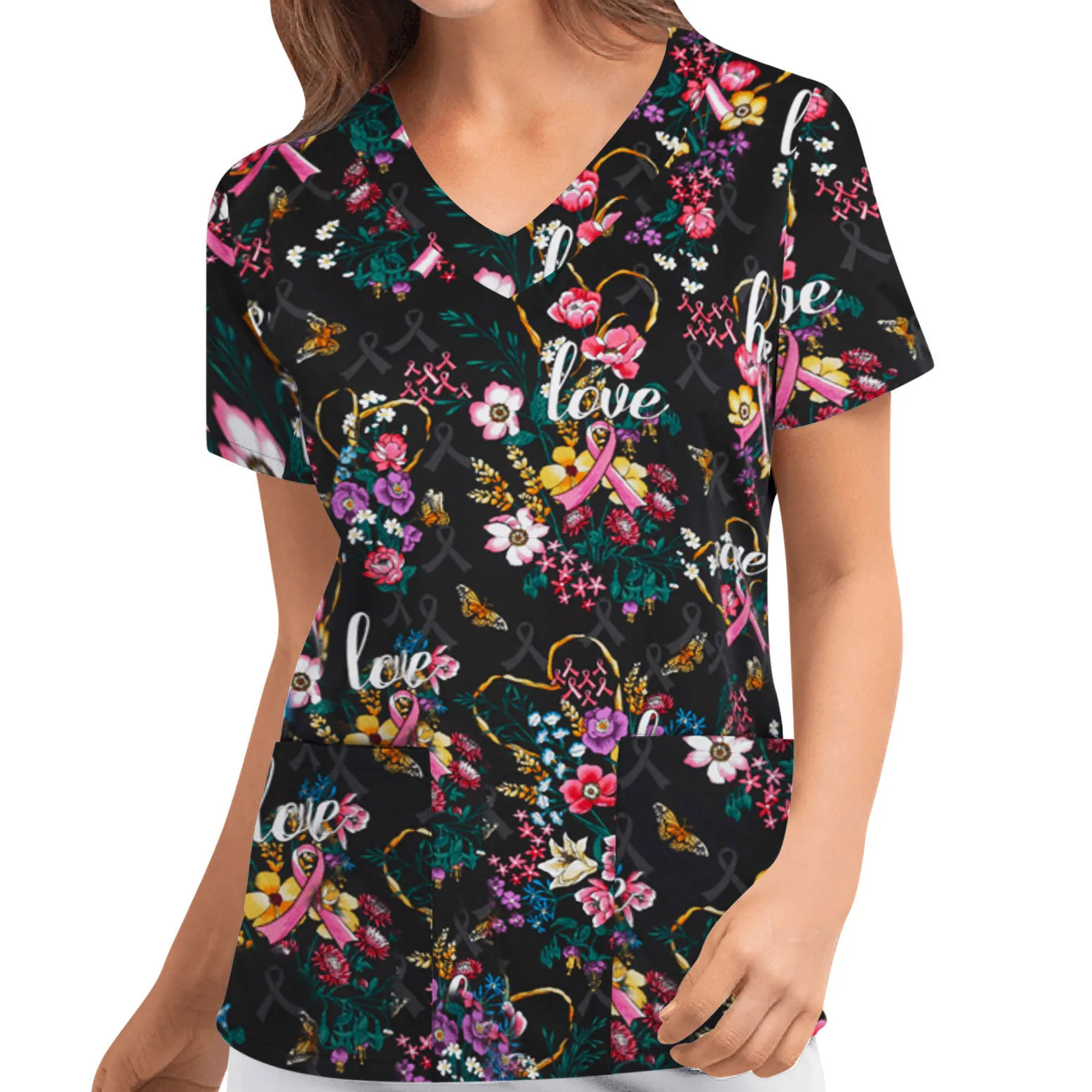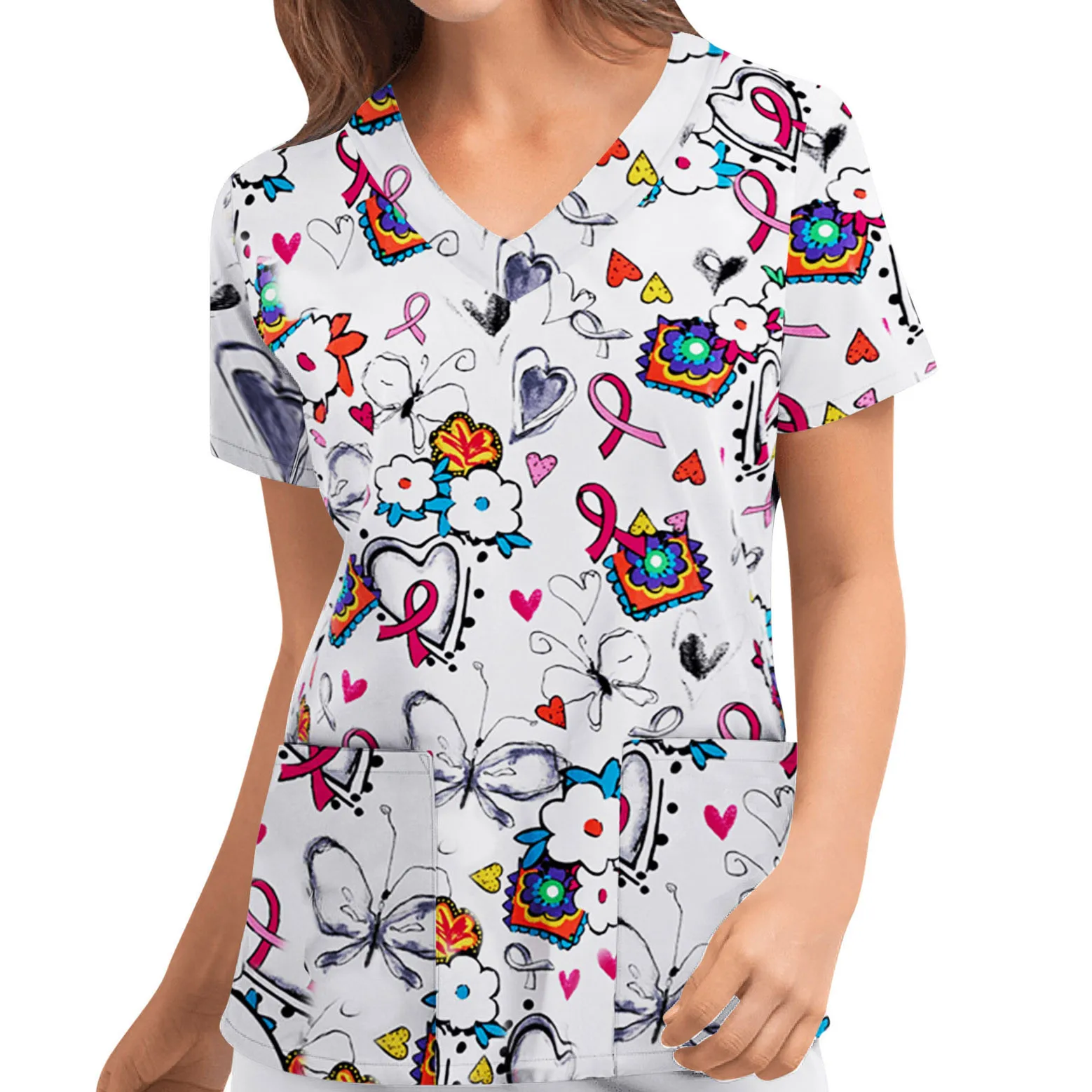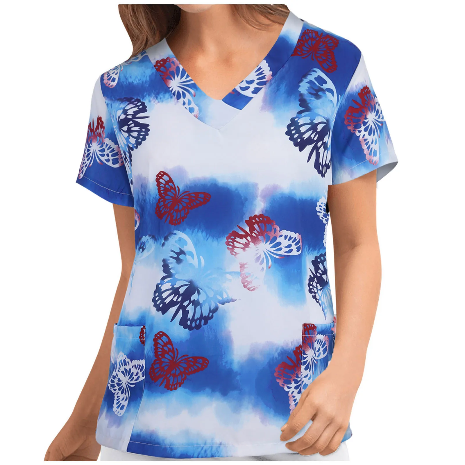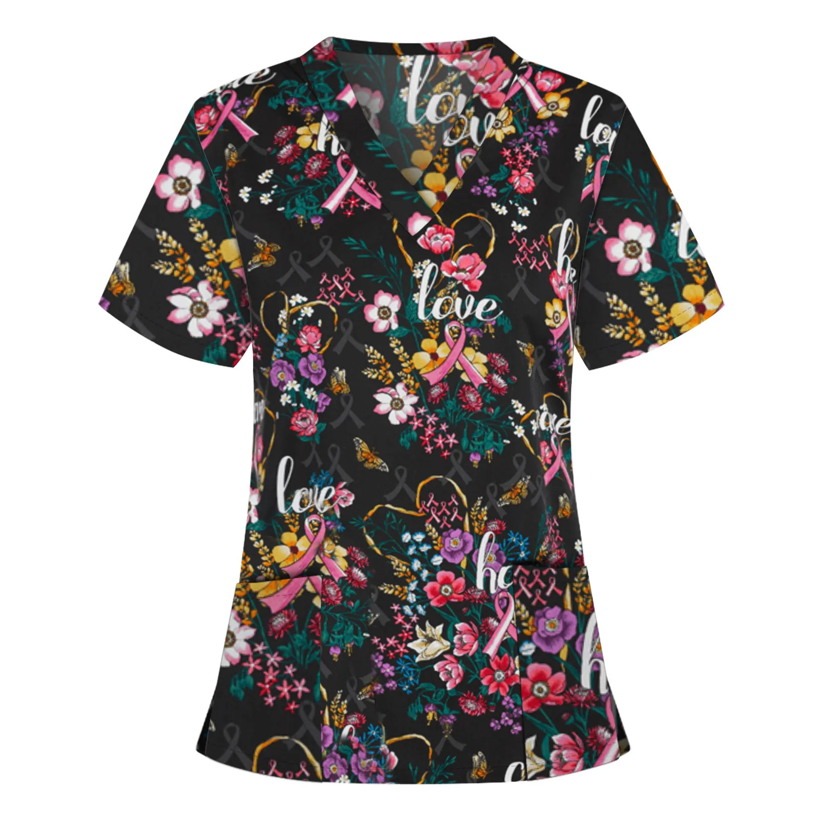 Женская блузка с коротким рукавом, V-образным вырезом и принтом животных