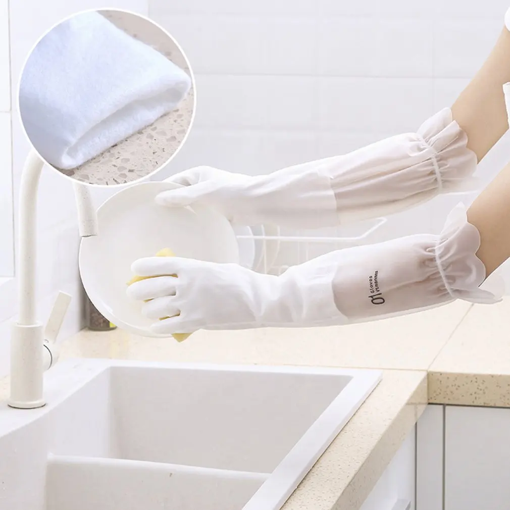 Водонепроницаемые перчатки для мытья автомобиля, перчатки для мытья дома, плюшевые полупрозрачные резиновые перчатки для женщин, инструменты для уборки кухни