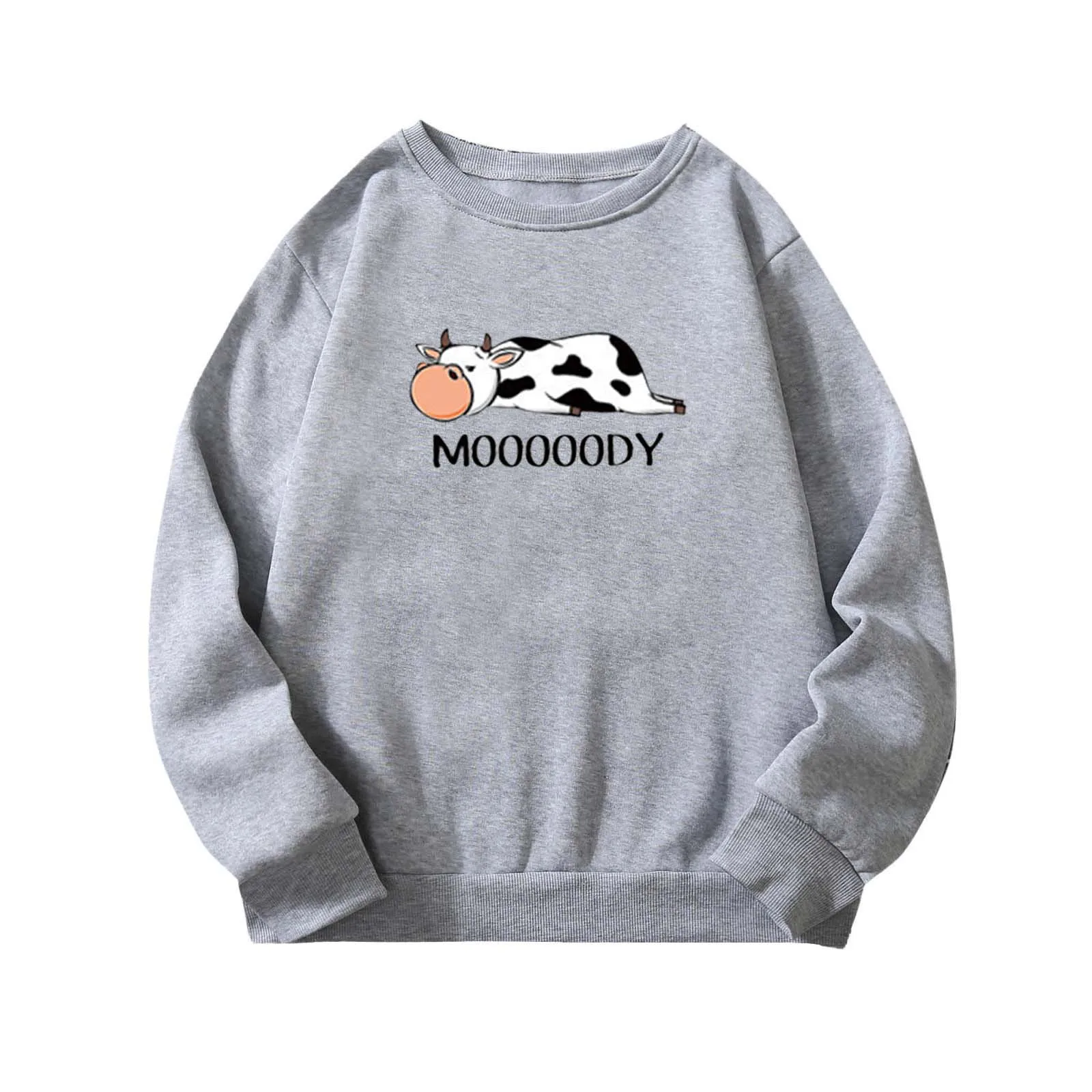 Толстовка Женская с длинным рукавом, милый свитшот с мультяшным принтом коровы, Модный пуловер свободного покроя в стиле Харадзюку, весна-осень