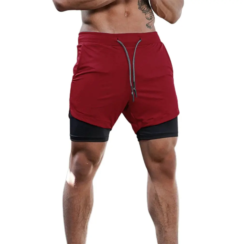 Мужские шорты для бега 2 в 1, двухслойные быстросохнущие спортивные шорты для бега в спортзале, спортивные шорты Фитнес