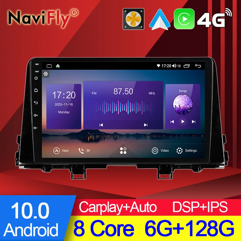 NaviFly 7862C 8 ядер 6G 128G 1280*720 Carplay Android 10 многофункциональная автомобильная интеллектуальная система для Kia Cerato 4 IV 2018 - 2021