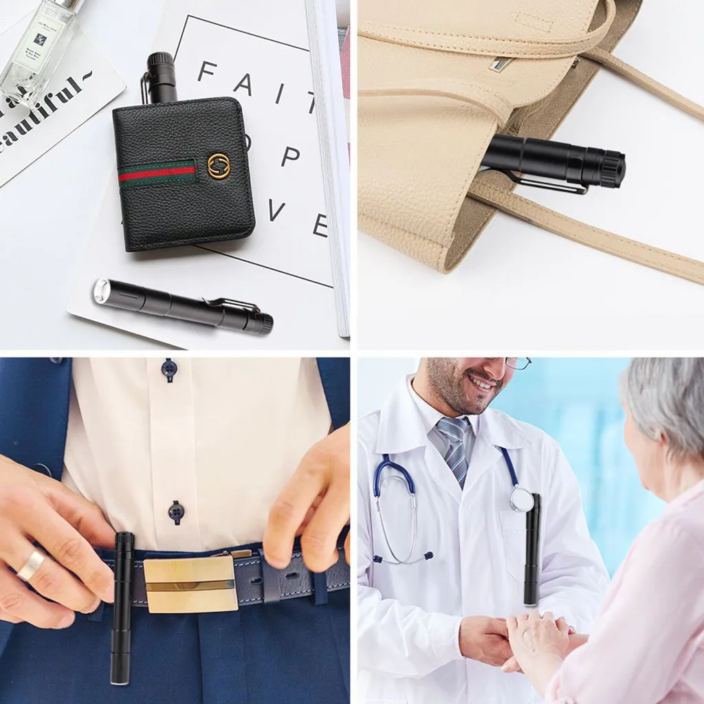 Портативный мини Размер, форма, как ручка, только в том случае, 12,5 см длина. Противоскользящая, износостойкая и обычная водонепроницаемая конструкция. Регулируемый диапазон фокусировки для различного использования, растягивается для регулировки фокуса. Поставляется с зажимом, его легко проскальзывать в кармане или зажимать на поясе или Рюкзак. Подходит для охоты, велоспорта, альпинизма, кемпинга и активного отдыха и т. д.
