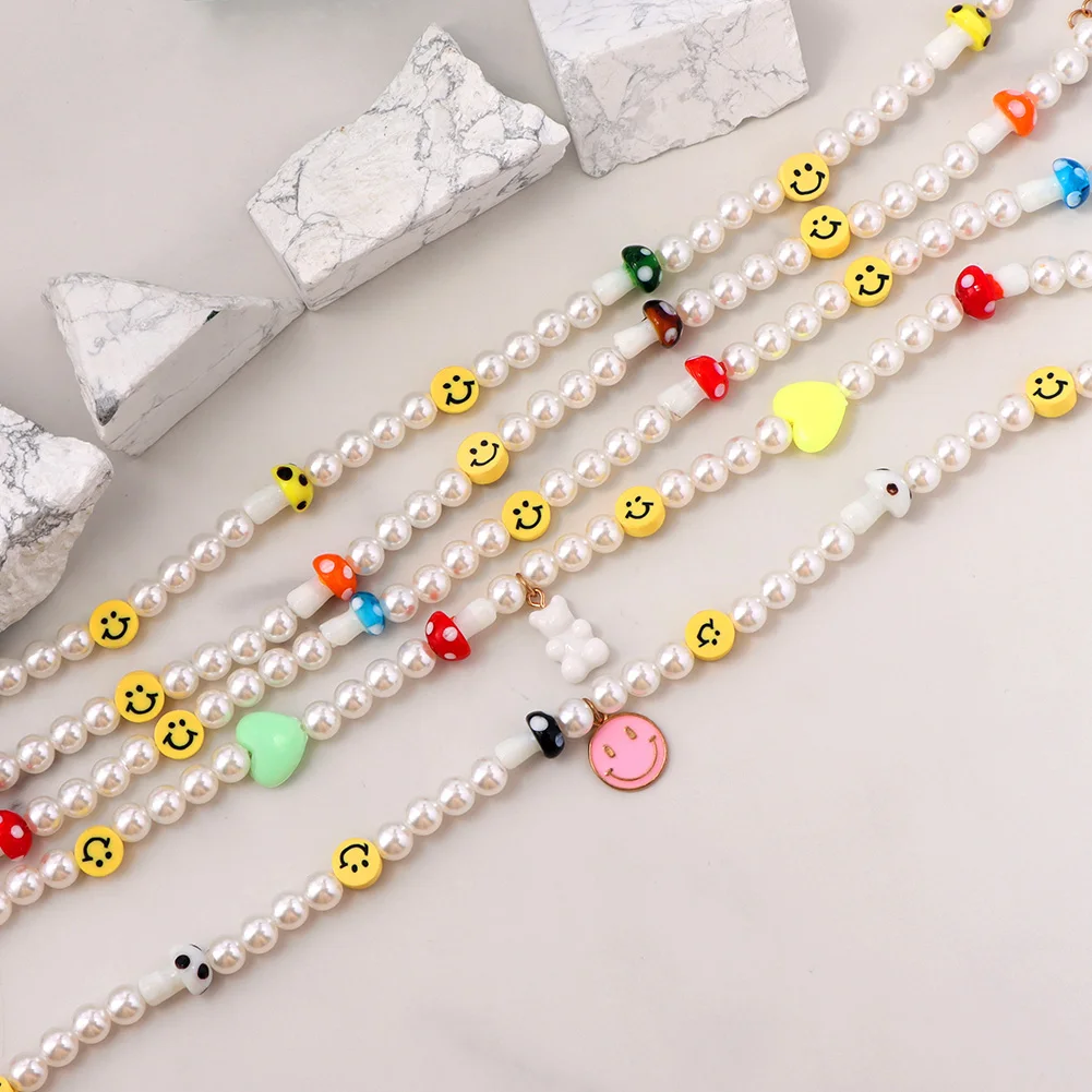 Ожерелье-чокер женское, со смайликом, грибом, жемчугом и бисером, богемное ювелирное изделие, 2021