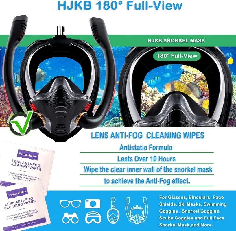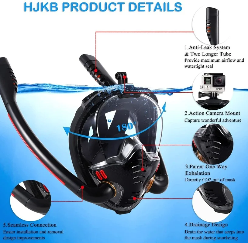Особенности:При вдыхании воздух поступает непосредственно с обеих сторон и не остается в поле зрения. Во время выдоха выхлопные газы выделяются из выхлопного клапана посередине, чтобы не допустить образования тумана.Оснащенные объективами высокой четкости, пользователи могут более четко наслаждаться подводным пейзажем.Анти-противотуманная пленка, может быть до 15000 часов анти-туман эффект, нет тумана препятствует линии зрения.Водонепроницаемая система, конструкция из бисера, предотвращает попадание морской воды в дыхательную трубку.3D fit, плотный водонепроницаемый, подходит для лица.Многофункциональная конструкция рамы камеры, съемная рамка камеры, удобная в использовании, запись красивых подводных пейзажей.Расширенный Эластичный Плетеный зеркальный ремень, свободно регулируемый и удобный.Конструкция с двойной дыхательной трубкой делает кислород быстрее и более плавным.Разные цвета на выбор, красивые и благородные.