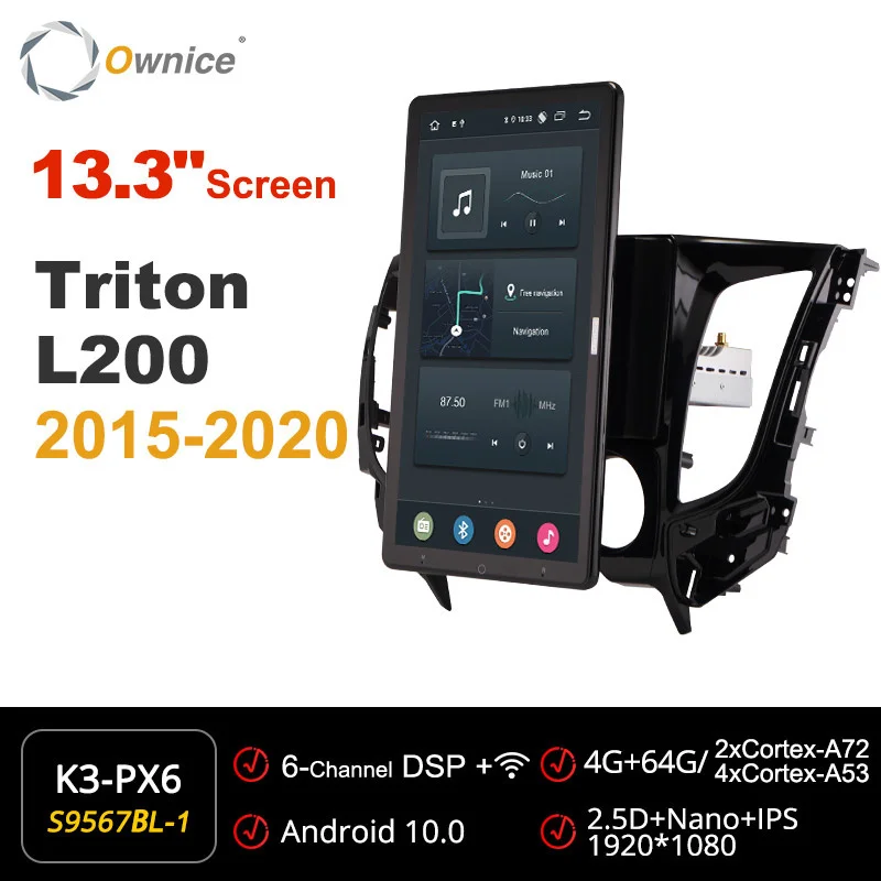 Автомагнитола Ownice для автомобилей Mitsubishi Triton L200 2015-2020, 13,3 дюймов, 1920*1080, 1 Din, GPS, поворотный