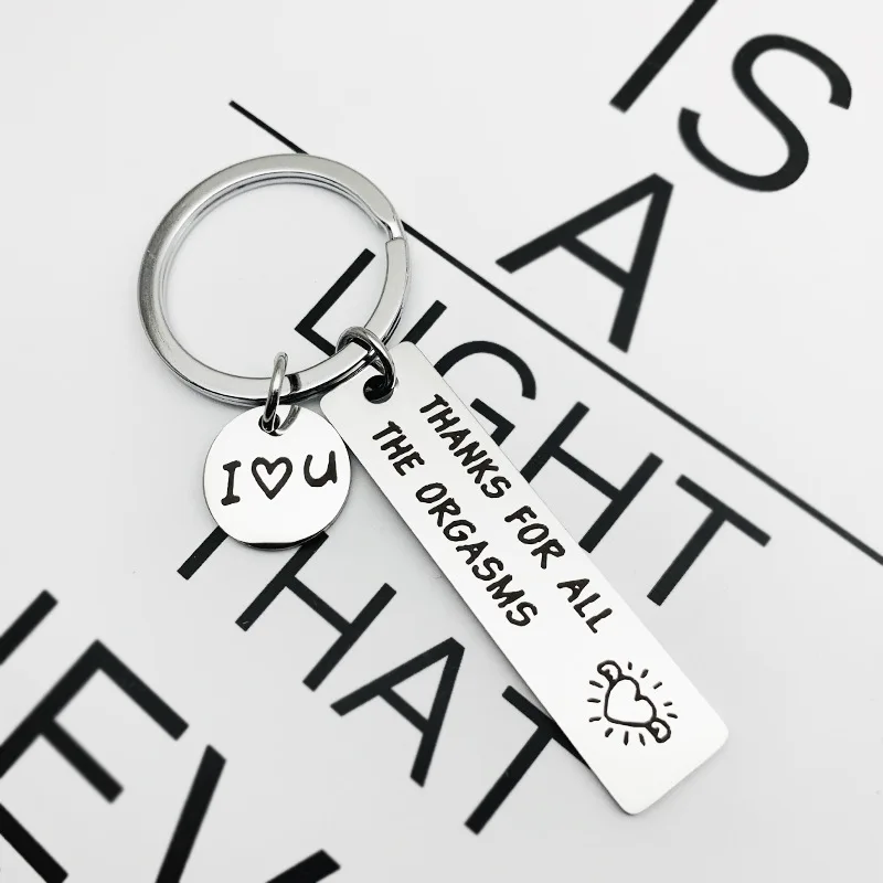 Металлический индивидуальный брелок с гравировкой, спасибо за все оргазмы, я люблю тебя, брелок для ключей, пара ключей, ювелирные изделия, подарки моему парню, мужу