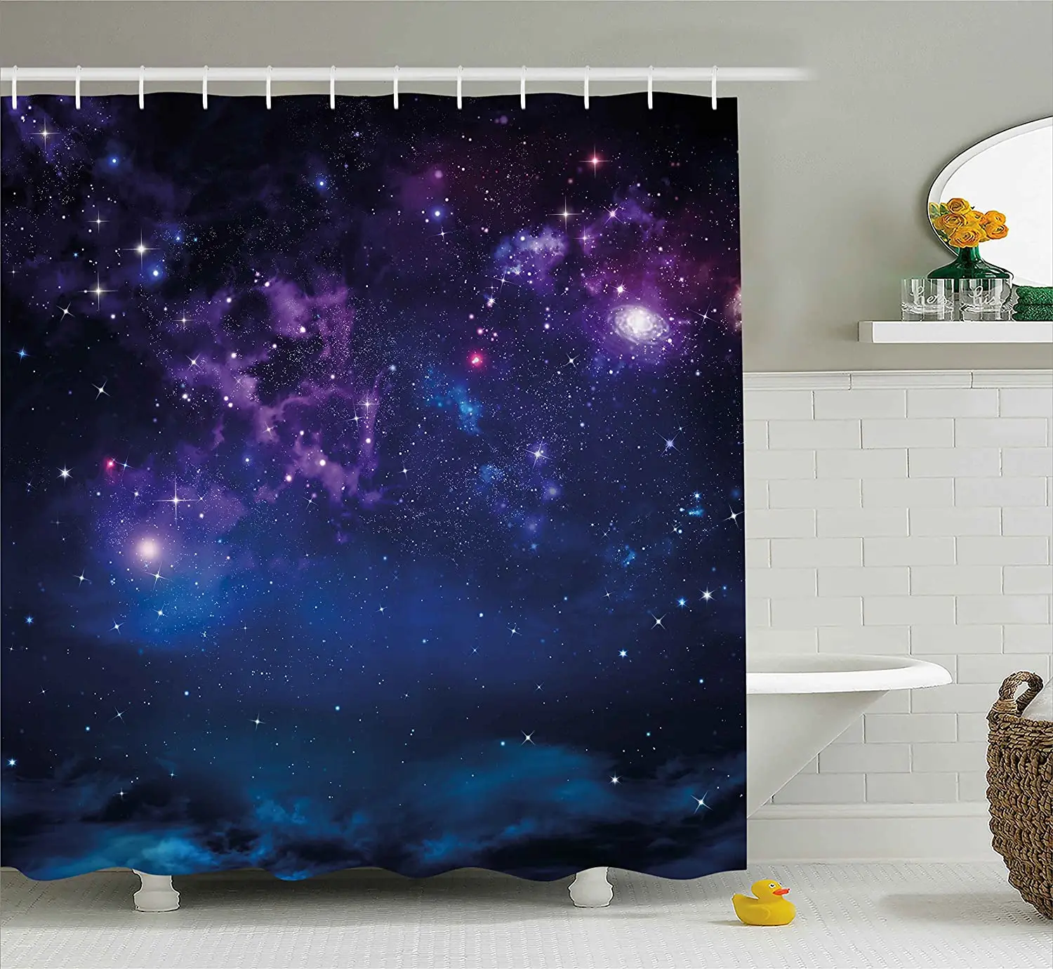 Занавеска для душа в космосе, с тематикой Млечного Пути, темная материя со звездами, полесветильник светящаяся, научная фантастика, дорожная витрина, занавеска для ванной комнаты, домашний декор