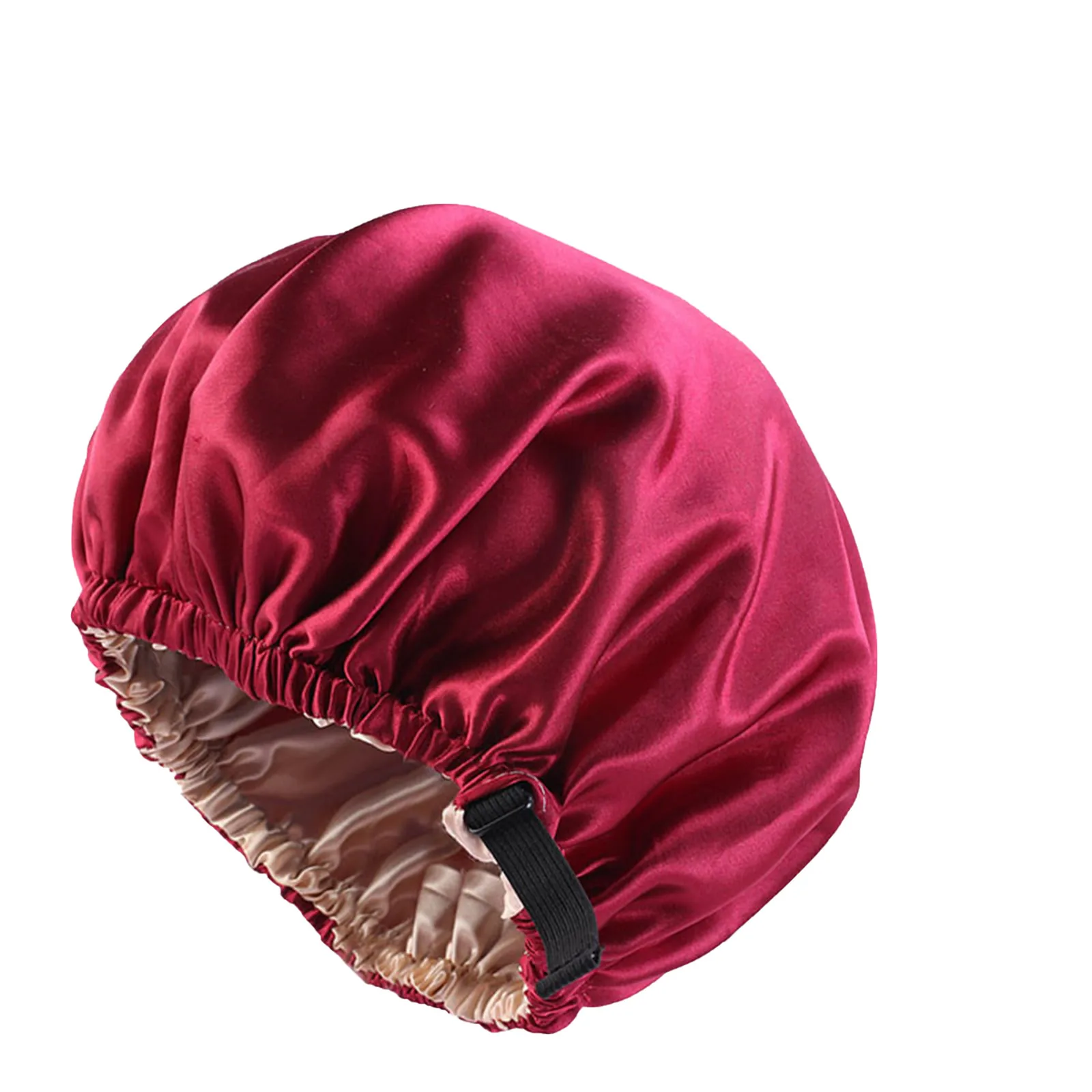 Атласная шапочка для сна, большая Двусторонняя регулируемая Женская шапочка для волос, аксессуары для ванной комнаты, многослойная Накладка для волос для душа