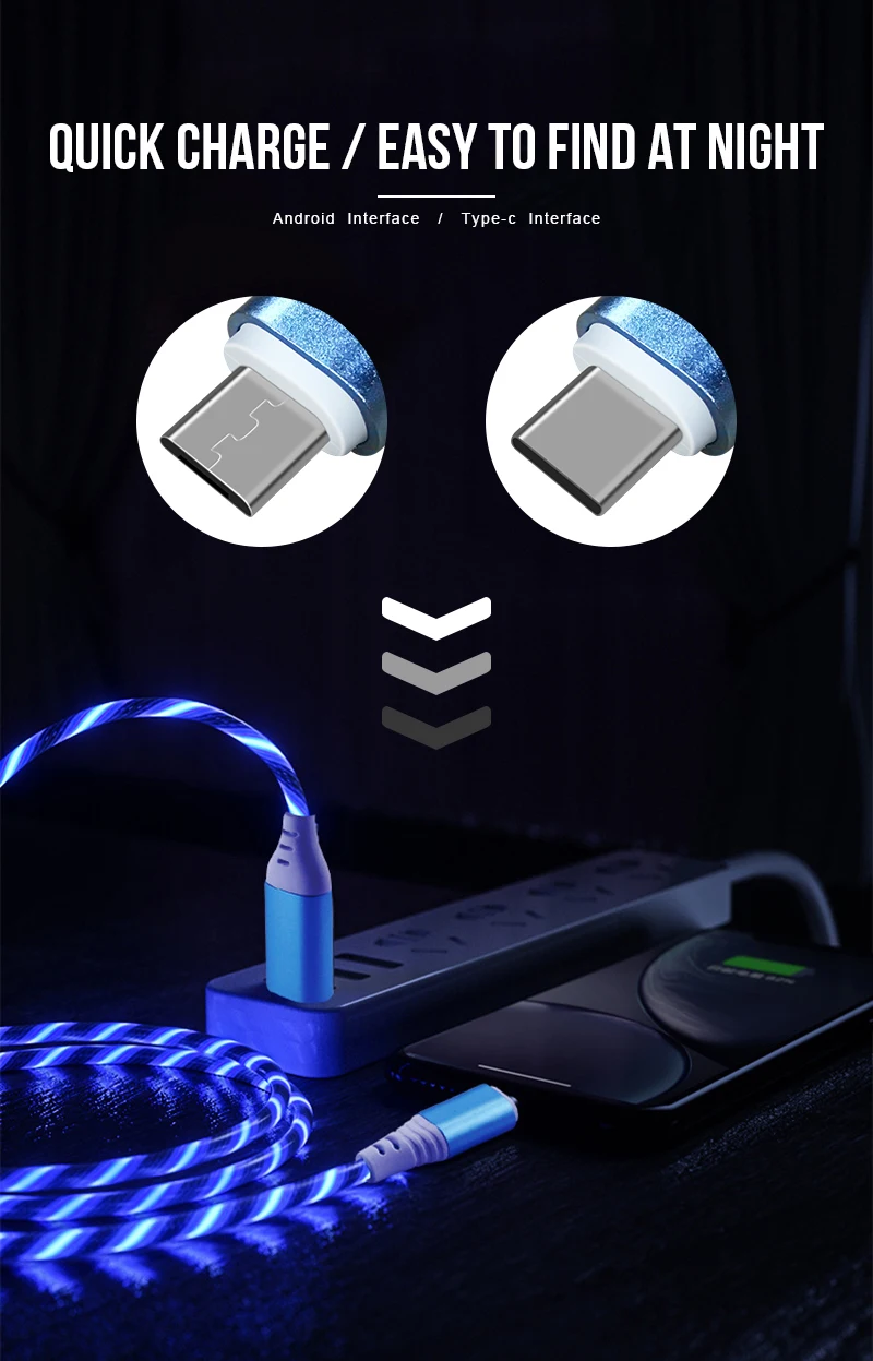 Светодиодный светящийся кабель USB Type-C для быстрой зарядки iPhone 8 7 6 X samsung s9 xiaomi hauwei