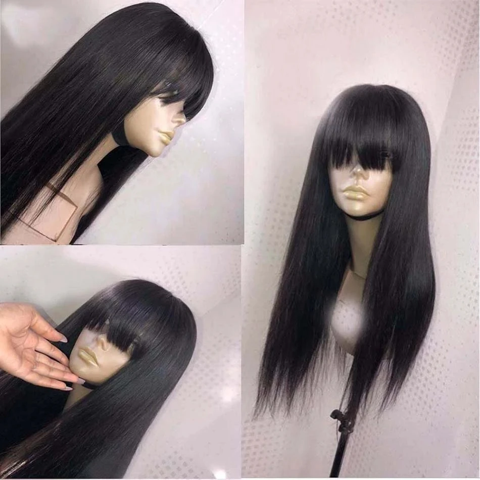 Прямые человеческие парики с челкой, полностью машинный парик, мала...