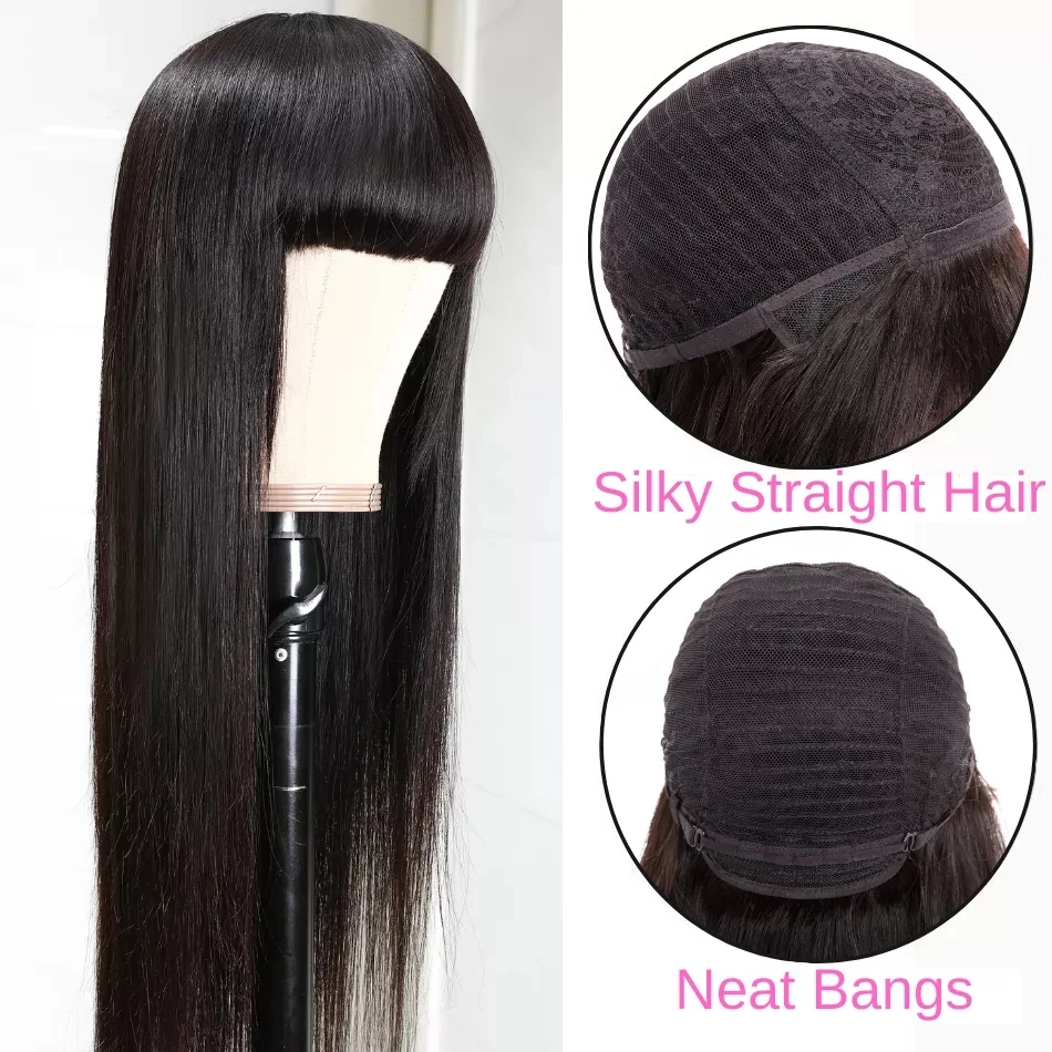 Парик Из прямых человеческих волос с челкой, Необработанные индийские парики из человеческих волос Remy для черных женщин, натуральные цвета, парики машинной работы, без клея