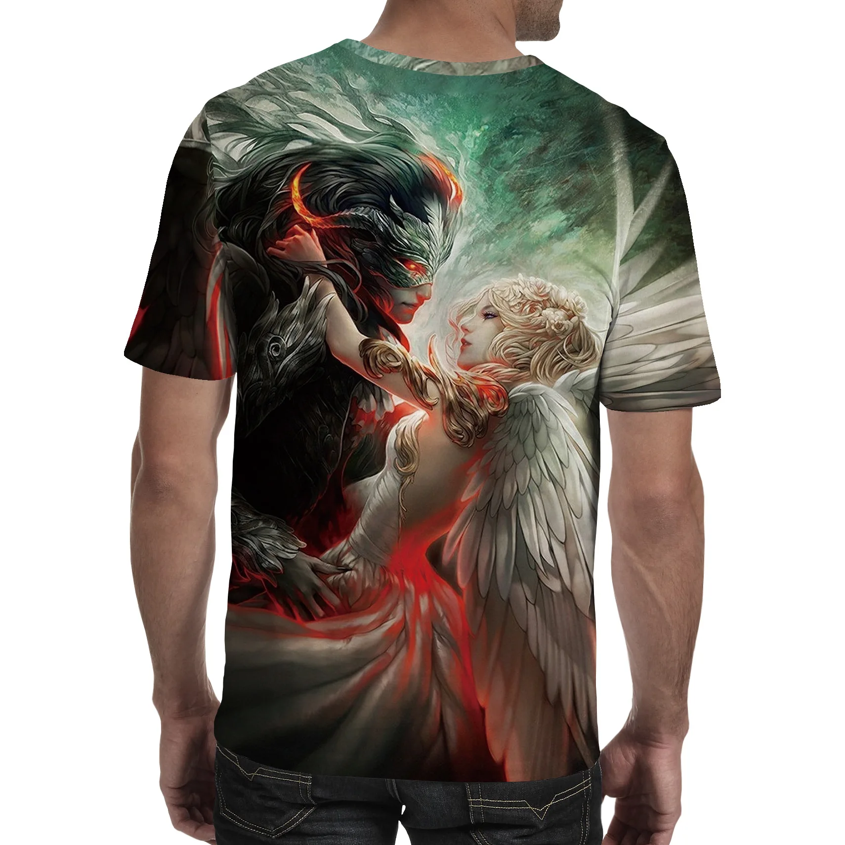 Футболка Мужскаяженская с 3D-принтом ангелов и демонов, рубашка для взрослых, уличная одежда в стиле хип-хоп, лето 2021