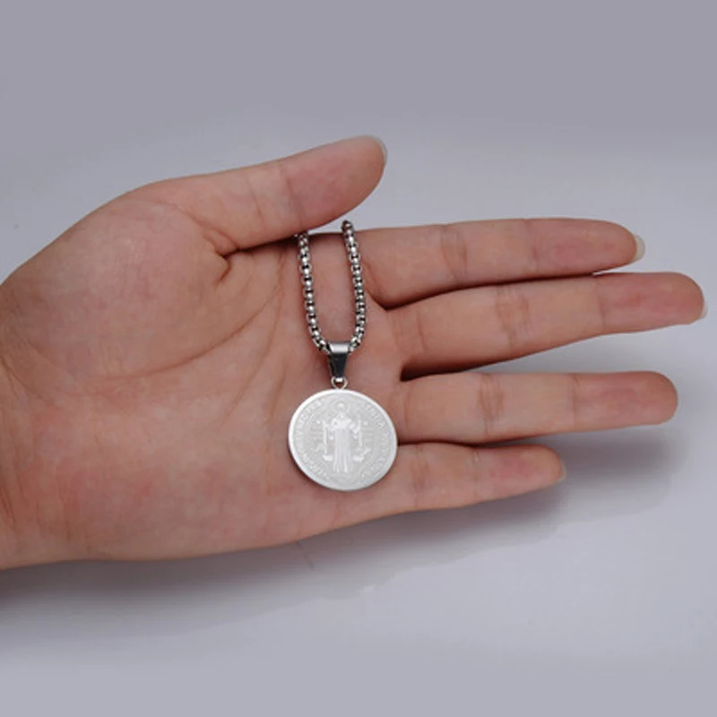 Цепочка с медальоном San Benito, из нержавеющей стали, металлический, католический, с изображением Святого Бенедикта, сглаза